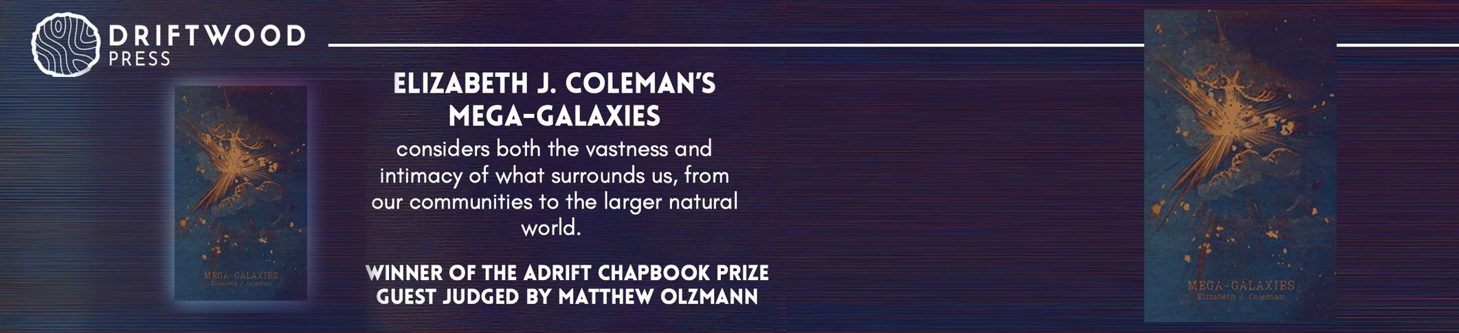 Driftwood Press is proud to announce the winners of the 2025 Adrift Writing Contests! Matthew Rickart's "Brother Blood" is the winner of the Short Story Contest and Elizabeth J. Coleman's Mega-Galaxies is the winner of the Poetry Chapbook Contest. Congratulations to our winners!